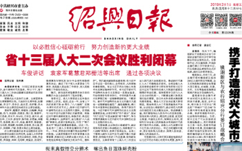 2019年3月14日《諸暨日報》頭條整篇報道長生鳥掌舵人阮博士